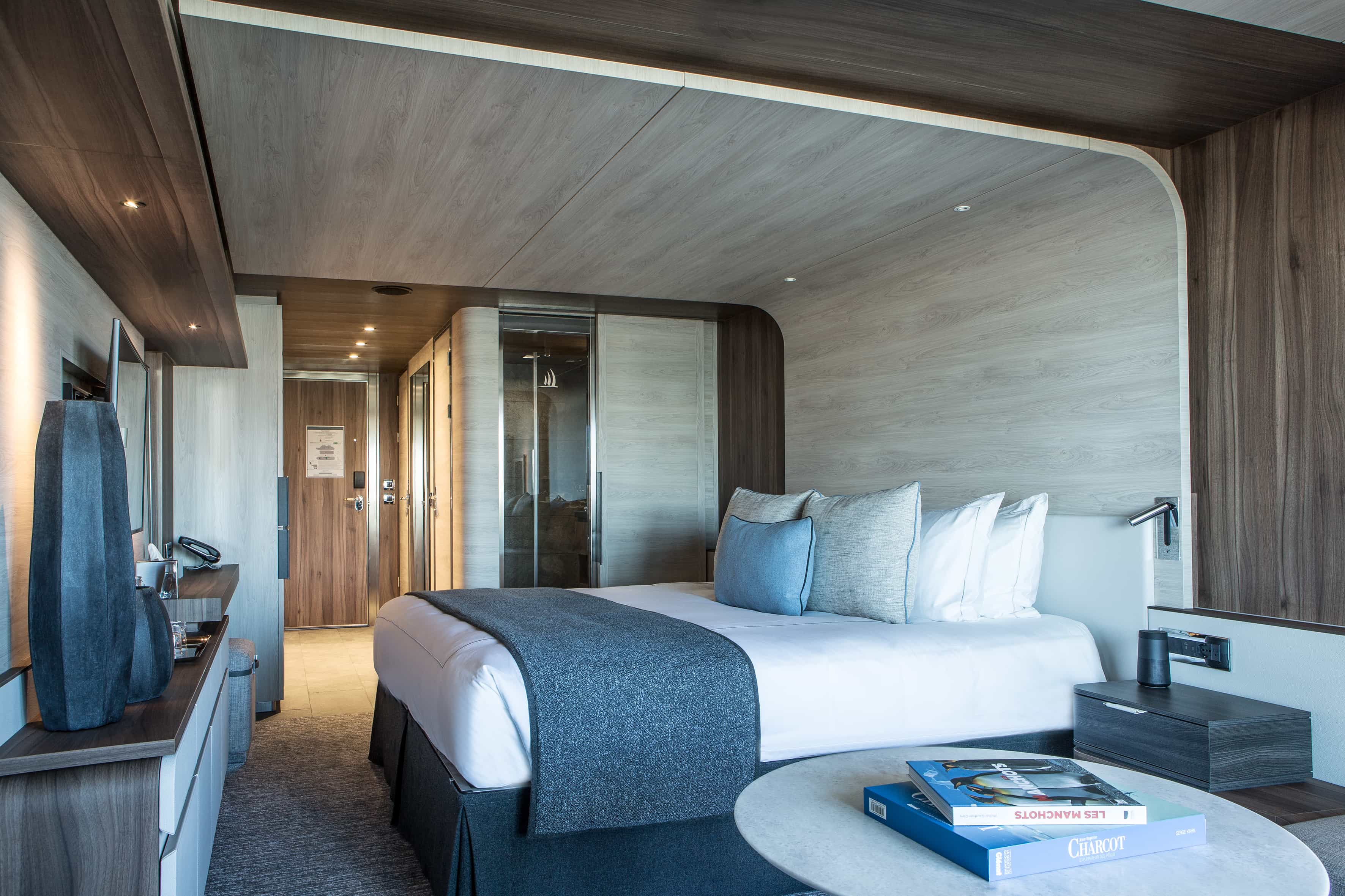 Le Commandant Charcot zählt zu den fortschrittlichsten Polarexpeditionsschiffen der Welt. Ein Hybridantrieb aus Flüssigerdgas und Elektrobatterien treibt das 2021 in Dienst gestellte PC2-Schiff an und setzt neue Maßstäbe. Die 123 Kabinen und öffentlichen Räume sind so luxuriös gestaltet, dass der Eindruck einer Privatyacht entsteht. Zwei Expeditionsräume, ein Vortragsraum, ein Theater, mehrere Lounges, ein Promenadendeck, Boutique, Wellnessbereich mit Sauna, Innen- und Außenpool sowie zwei Restaurants mit ausgezeichneter Küche prägen das Bordleben. Französisches und internationales Publikum fühlt sich in der gemütlich-eleganten Atmosphäre wohl.