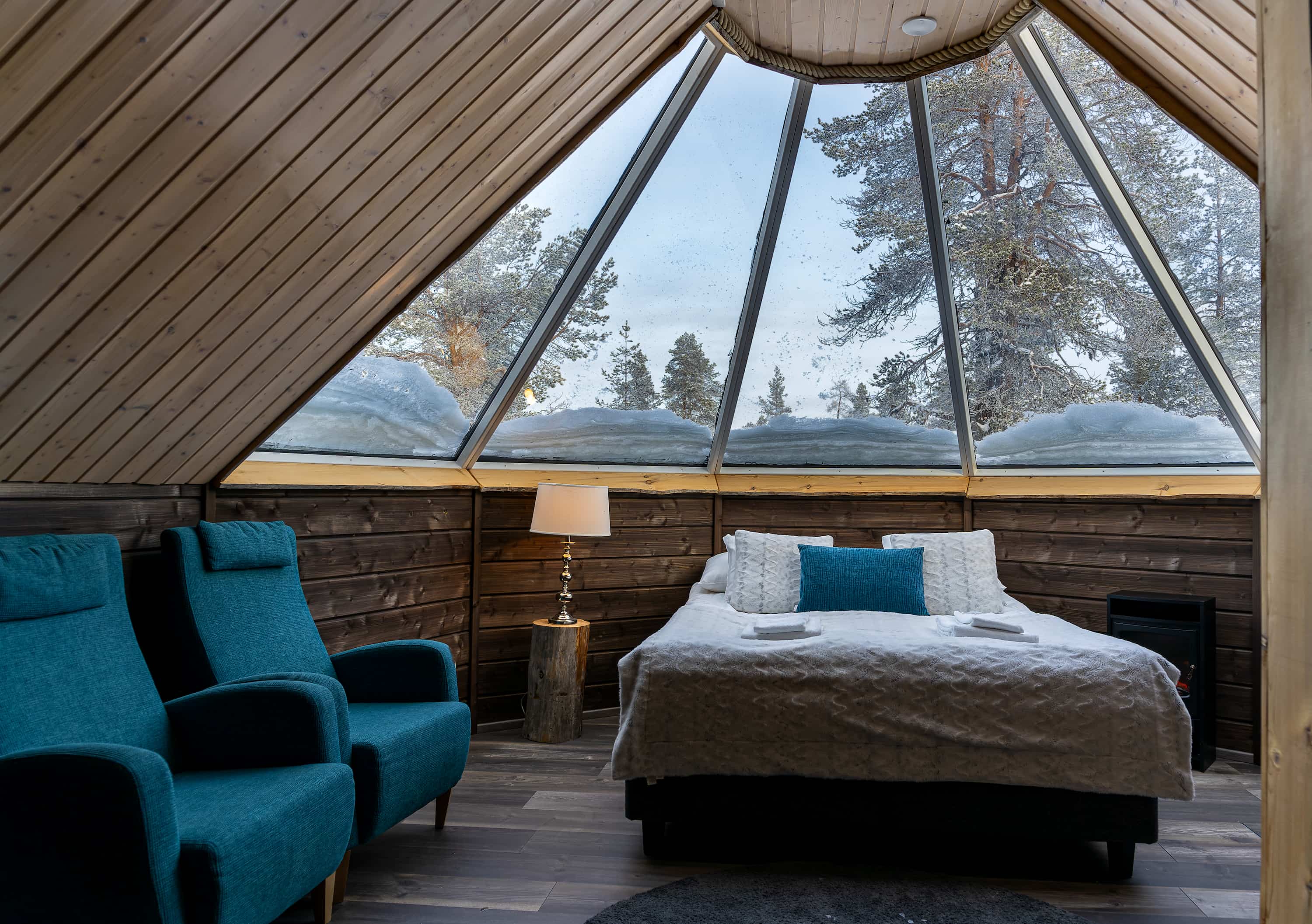Die ca. 29 m² großen Aurora Cabins ermöglichen durch ihr Glasdach unvergessliche Ausblicke auf den Polarhimmel – direkt vom Bett aus. Ausgestattet mit Doppel- oder Twin Betten, Du/WC und teils mit Ausziehsofa, bieten sie gemütlichen Komfort für magische Nächte im Norden.